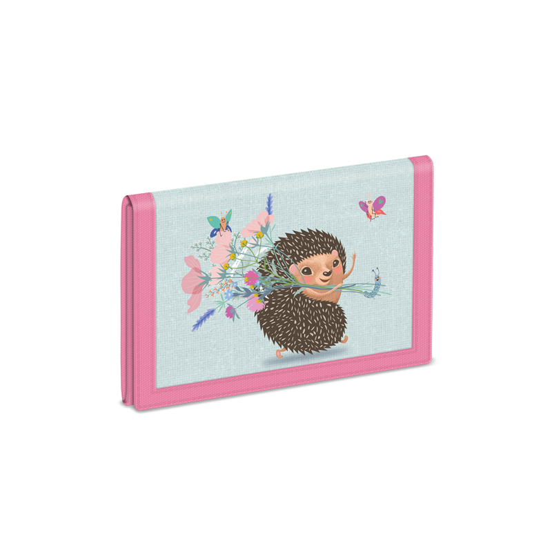 Peňaženka vhodné pre deti. Uzatváranie na suchý zips. Priečnok na mince. Rozmer: 12x9cm.
