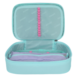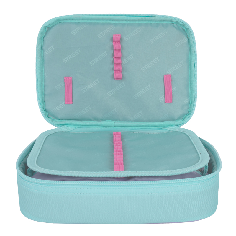 Peračník má jednu vnútornú klopu, ktorá rozdelí ho na 2 časti. Miesto na ceruzky, miesto na gumu alebo iné. Miesto pre 30 ceruziek.