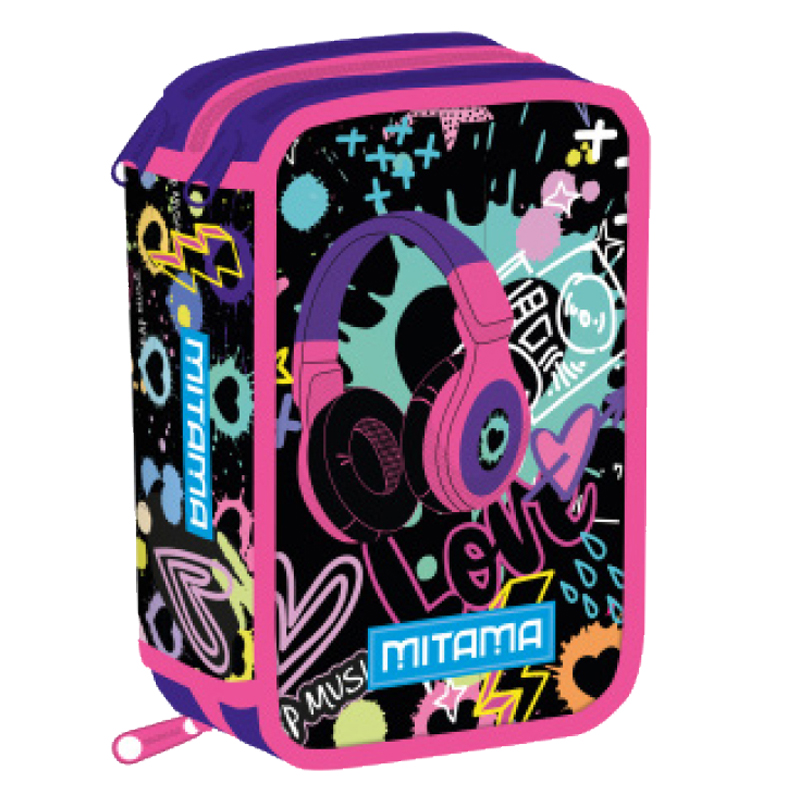 Detský školský trojposchodový peračník s bohatou výbavou a s gumovými úchytmi na ceruzky a perá, gumu od talianskej značky MITAMA. Obsah peračníka: 2x guličkové pero FLUO, 2x gumovateľné pero Spinny(modré,červené),2x guličkové pero(modré,čierne) 1x tyčinkové lepidlo, 2x ceruzka HB, 1x guma FLOU, 1x strúhadlo FLUO, 1x pravítko FLUO 15cm, 18x farebné pastelky trojhranné, 18x supervyprateľné trojhranné fixky. Rozmer: 20x14x7 cm