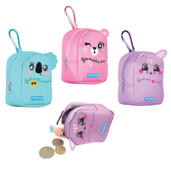 Praktické prívesky na tašky s karabínkou. Zatváranie zipsom. Mix motívov. Rozmer: 7x4x9,5cm.