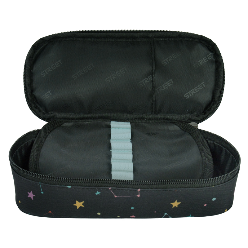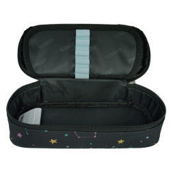 Školské púzdro v modernom prevedení. Vybavené pevnými zipsami, sieťovanou kapsičkou na zips a chlopňou s pevnými pútkami po oboch stranách. Pod chlopňou je miesto pre volné uloženie písacích potrieb či iných drobností. Vhodné pre školákov na 2. stupni a starších študentov. Puzdro je ľahko umývateľné.Rozmer: 21x10x5cm.