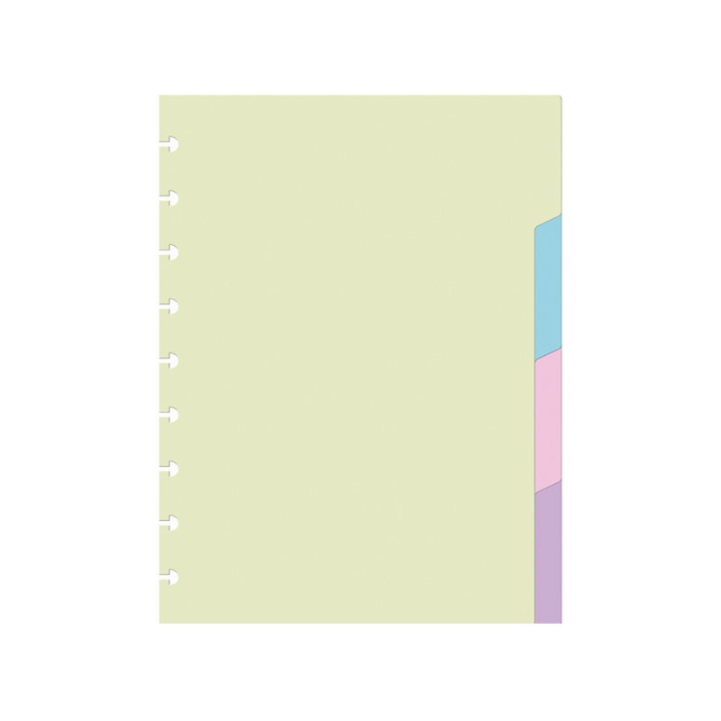 Formát B5 je ideálny, keď chceš viac priestoru na poznámky — a s veľkými rozdeľovačmi EcoSmart B5 budeš mať aj perfektný prehľad. Sú kompatibilné s kolieskovými/diskovými zošitmi a farebne ladia s malými rozdeľovačmi v jemných pastelových odtieňoch.