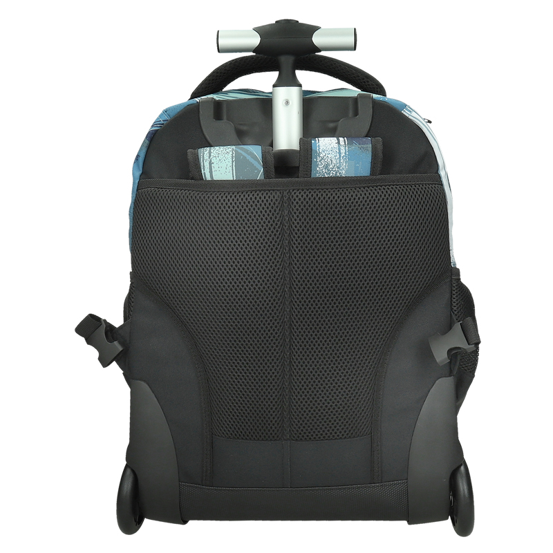Ergonomická, pohodlná vysúvacia rúčka, vďaka ktorej možno batoh tlačiť pred sebou, alebo ho ťahať za sebou. Batoh je na spodku vybavený tichými kolieskami.