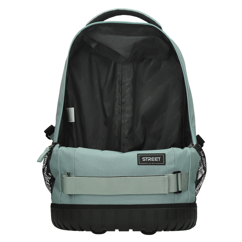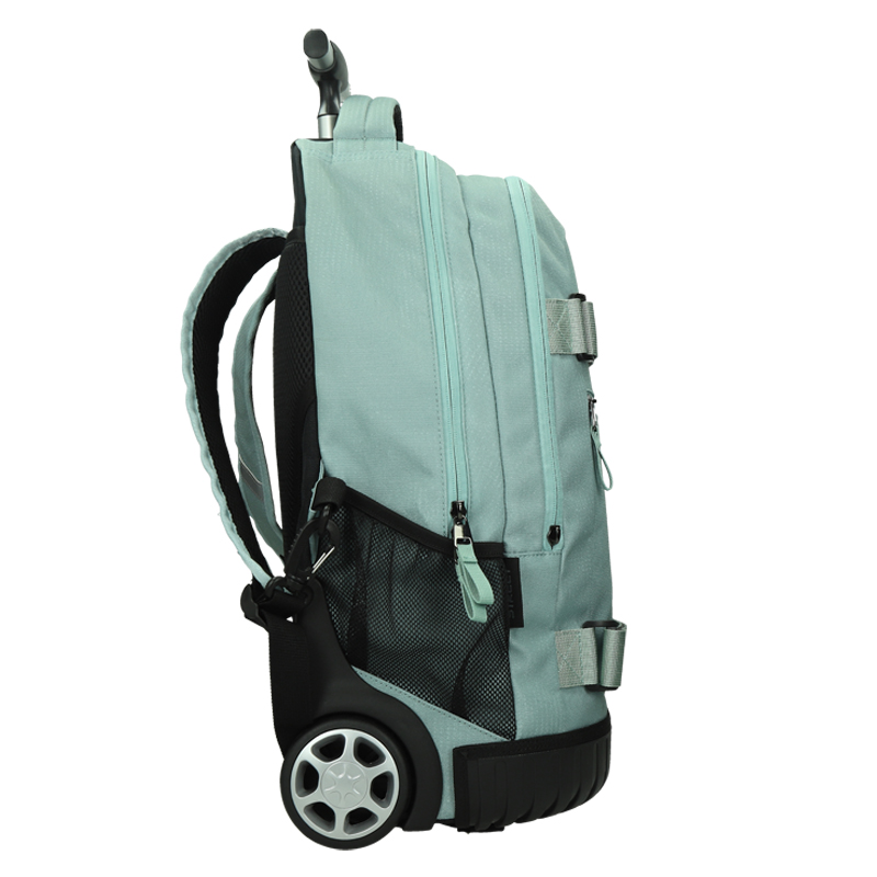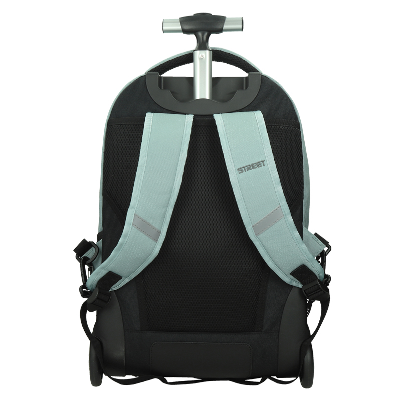 Ergonomická, pohodlná vysúvacia rúčka, vďaka ktorej možno batoh tlačiť pred sebou, alebo ho ťahať za sebou. Batoh je na spodku vybavený tichými kolieskami.