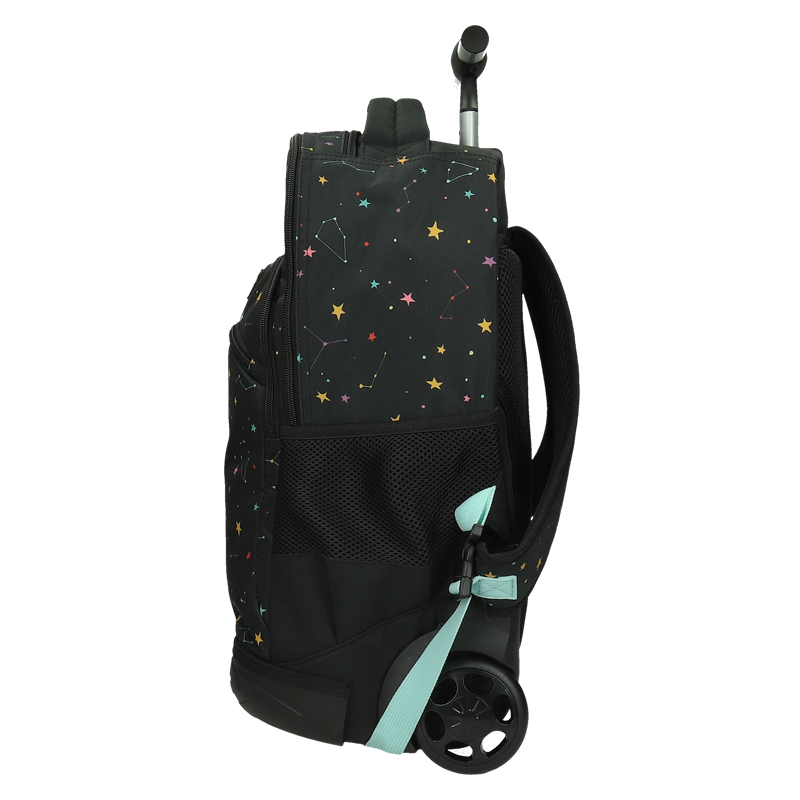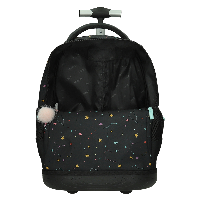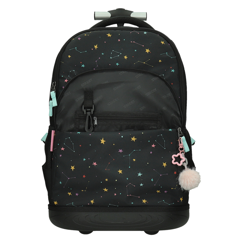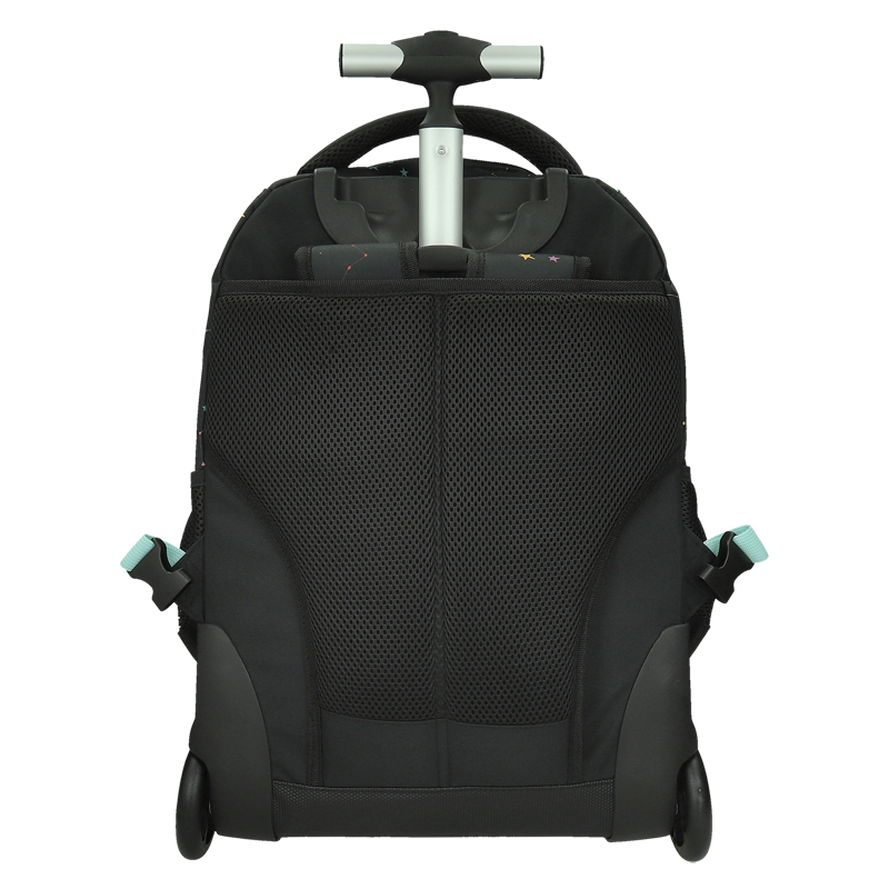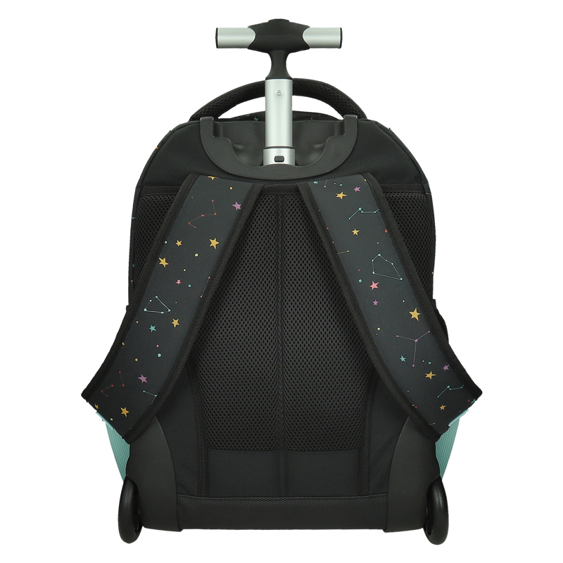 Ergonomická, pohodlná vysúvacia rúčka, vďaka ktorej možno batoh tlačiť pred sebou, alebo ho ťahať za sebou. Batoh je na spodku vybavený tichými kolieskami.