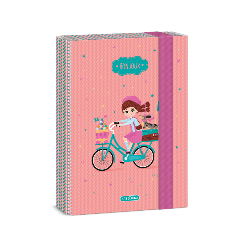 Box na zošity, formát A5,s motívom , zatváranie zaistené gumičkou,materiál tvrdý karton.