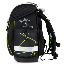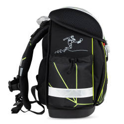 Reflexné pásiky vpredu, na bokoch aj na ramenách sú najmä pre maximálnu bezpečnosť dieťaťa v zlých podmienkach viditeľnosti. Školská taška je vyrobená z vodotesného materiálu.