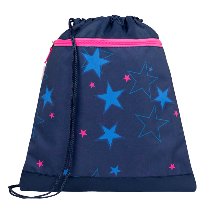 Vrecko sa sťahuje pomocou šnúrok, ktoré vedú cez celú zadnú časť a dá sa nosiť na chrbte alebo na ramene. Je vhodné na prezuvky alebo aj na oblečenie na telesnú výchovu alebo na každodenné nosenie. Rozmer vrecúška: 43 x 45 cm.