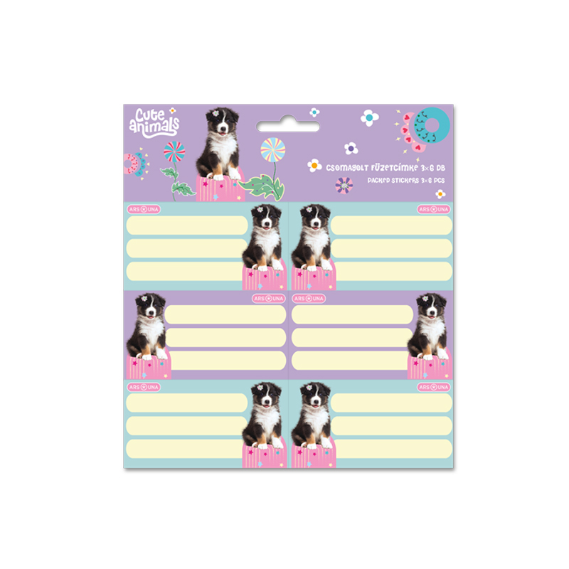 Samolepiace štítky na zošity. V jednom balení je 18 štítkov.